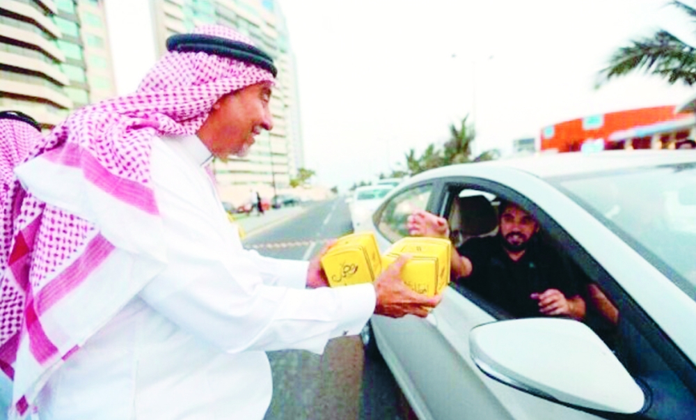 أحمد مسعود يوزع إفطار صائم في رمضان الماضي.