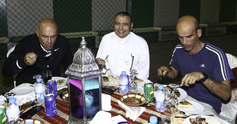 النادي الأهلي أحمد المرزوقي وغروس يتناولان طعام العشاء البارحة. (المركز الإعلامي بالنادي الأهلي)