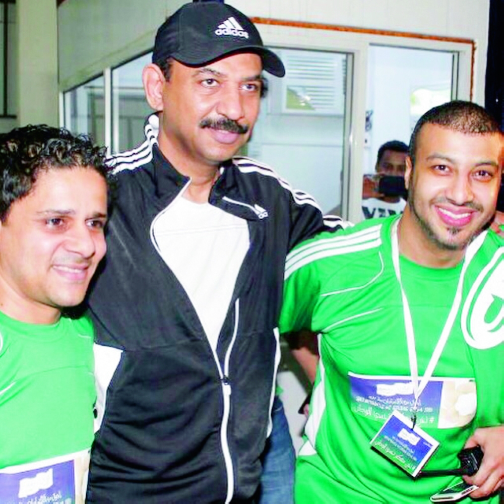 عبادي الجوهر يتوسط وسيم والقهوجي في مناسبة سابقة. (عكاظ)
