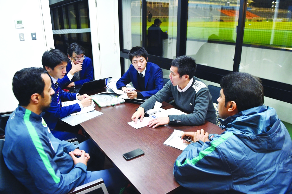 أثناء الاجتماع المشترك بين إدارة المنتخبين السعودي والياباني.
