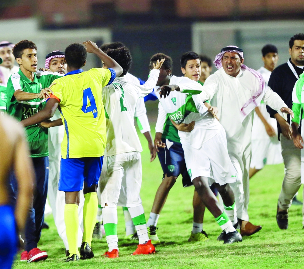 بعض الانفلاتات التي شهدتها مباراة نهائي كأس الناشئين بين النصر والأهلي. (تصوير: عبدالله الشريف)