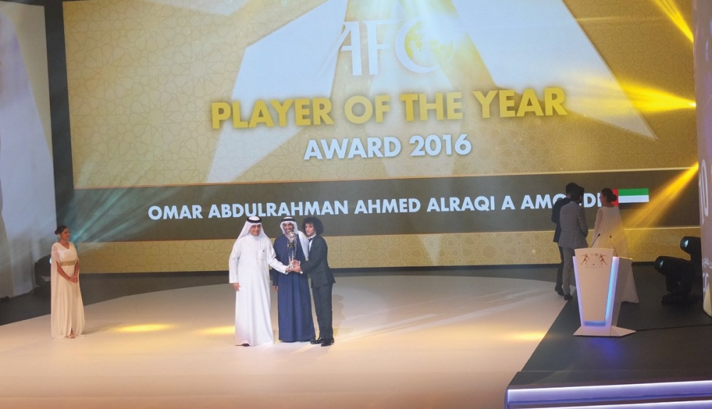 فاز عمر عبد الرحمن عموري (25 عاما) قائد فريق العين ونجم منتخب الإمارات بجائزة أفضل لاعب في قارة آسيا لعام 2016.