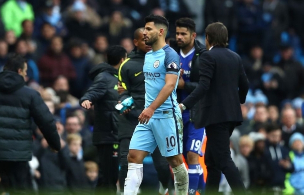 وشهدت المباراة التي فاز فيها تشلسي 3-1 على ملعب مانشستر سيتي، إشكالا حادا في الدقيقة الخامسة من الوقت بدل الضائع، حينما ركل هداف سيتي الارجنتيني سيرخيو اغويرو، بطريقة عنيفة، مدافع تشلسي البرازيلي دافيد لويز، فنال بطاقة حمراء.