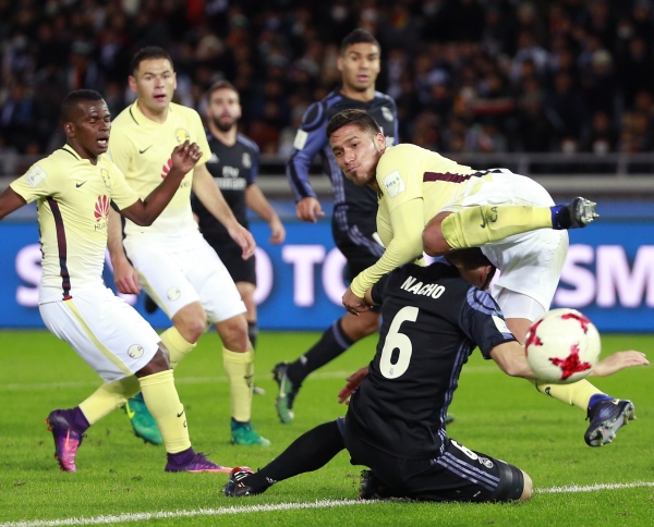 تأهل فريق ريال مدريد الإسباني بطل دوري أبطال أوروبا إلى المباراة النهائية لكأس العالم للأندية كرة القدم بعد فوزه على كلوب أميركا المكسيكي بطل الكونكاكاف بهدفين دون رد اليوم في يوكوهاما . وسجل هدفي المباراة الفرنسي كريم بنزيمة بالدقيقة 46 ، والبرتغالي كريستيانو رونالدو بالدقيقة 93 ، وسيلتقي بذلك ريال مدريد في المباراة النهائية الأحد المقبل مع كاشيما انتلرز بطل اليابان .