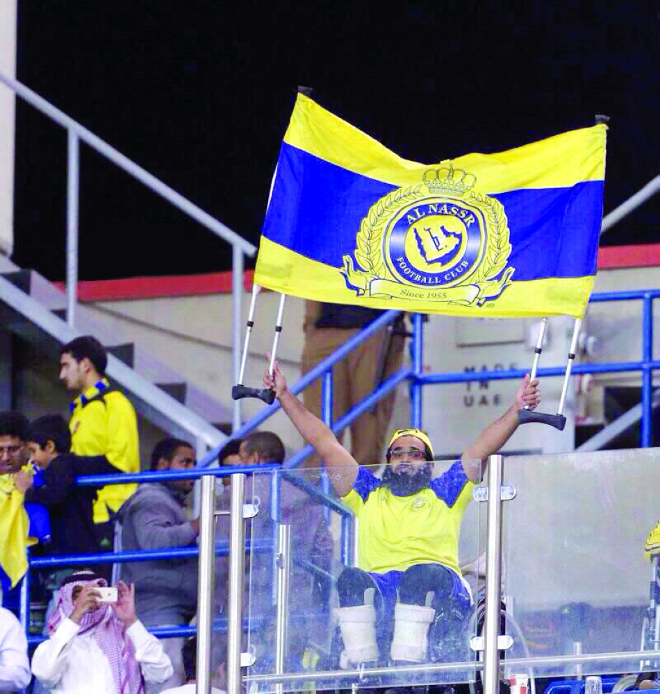 أبو سيفي في المدرجات لدعم النصر. (عكاظ)