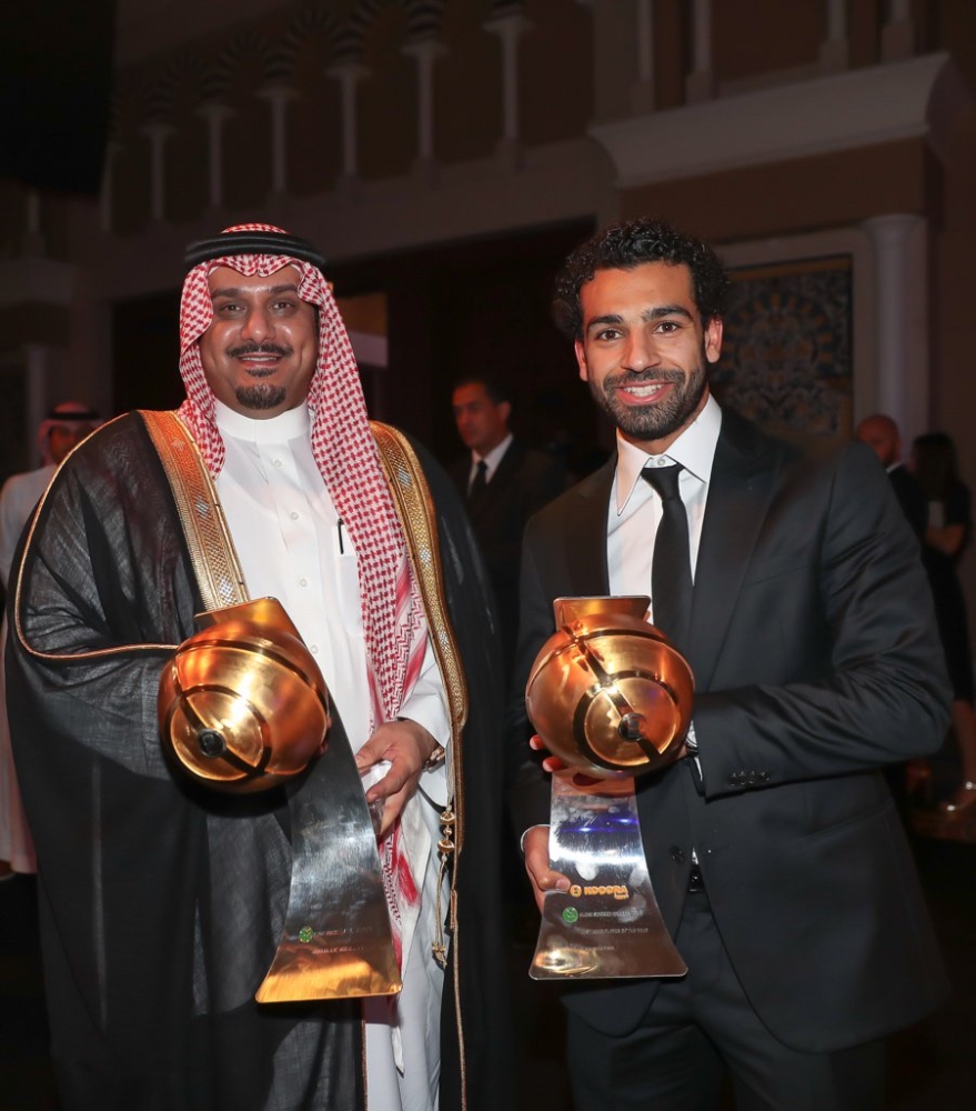 المصري محمد صلاح مع رئيس الهلال عقب التتويج.