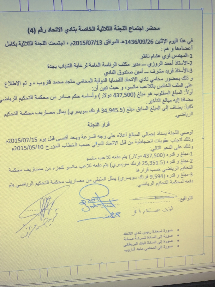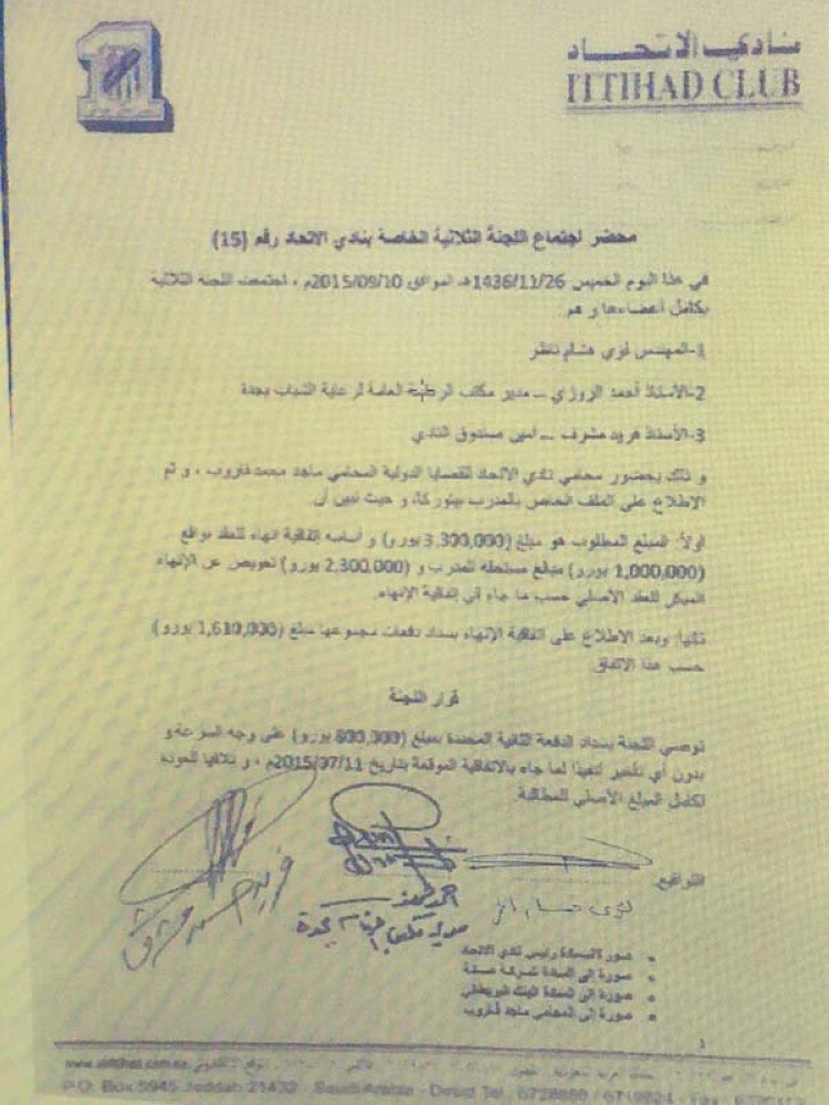 واصلت «عكاظ» متابعتها للملف الاتحادي الخاص بالشكاوى الخارجية بعد أن أسفرت إحداها عن سحب ثلاث نقاط من رصيد الفريق الأول لكرة القدم في دوري جميل للمحترفين، إذ تبين أن القرض البالغ 50 مليون ريال والممنوح من أحد البنوك المحلية بضمان الهيئة العامة للرياضة لنادي الاتحاد والذي تم تشكيل لجنة إشرافية لمتابعة صرفه مكونة من نائب رئيس اللجنة الأولمبية السعودية لؤي ناظر ومدير مكتب الهيئة العامة للرياضة بمحافظة جدة أحمد روزي وعضو مجلس إدارة نادي الاتحاد السابقة فريد مشرف، لم يتم التعامل معه وفقا للإجراء الأفضل لنادي الاتحاد؛ وذلك بعدم توجيه صرف القرض للقضايا المحكومة أو تلك القابلة للحكم فيها بنسبة 100%، وإنما صرفت لبعض القضايا المحسومة، مثل مستحقات نادي فاسكو ديغاما البرازيلي النادي السابق للاعب البرازيلي دي سوزا ووكلاء اللاعب، وكذلك اللاعب الأرجنتيني مانسو الذي كان يطالب بـ 437 ألف يورو، فيما ذهبت 25 ألف فرنك سويسري لمصاريف القضية وأنس الشربيني، وبعضها للاعبين ومدربين تم إحضارهم أخيراً للنادي أمثال المدرب الروماني بيتوركا واللاعب سامبا دياكيتي دون أن تصل موضوعاتهم إلى أدراج لجنة الانضباط بالاتحاد الدولي أو محكمة الكاس، في الوقت الذي كان ينبغى أن تصرف حسب الأولوية لتجنب الأحكام التي يمكن أن تصدر.ويشير المصدر إلى أنه من الخطأ تعجيل صرف مبلغ التعاقد مع المدرب الروماني بيتوركا الذي كان مرتبطا بعقد مع نادي الاتحاد لمدة موسمين لم يكملهما، إذ استلم مبلغ مليون يورو على أن يتم التنازل عن الشرط الجزائي الذي وقعته إدارة النادي في عهد إبراهيم البلوي بمليونين و300 ألف يورو، كما صرفت مستحقات سامبا دياكيتي دون أن يتقدم بشكوى.
