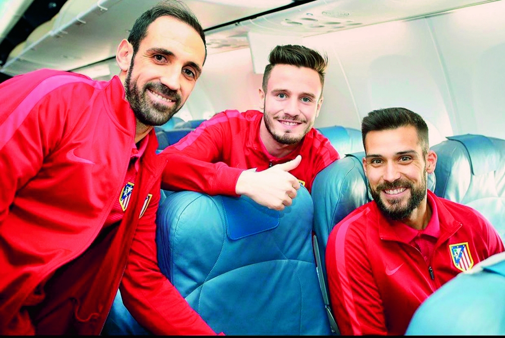 لاعبو أتلتيكو مدريد في الطائرة بمطار الملك عبدالعزيز بجدة.