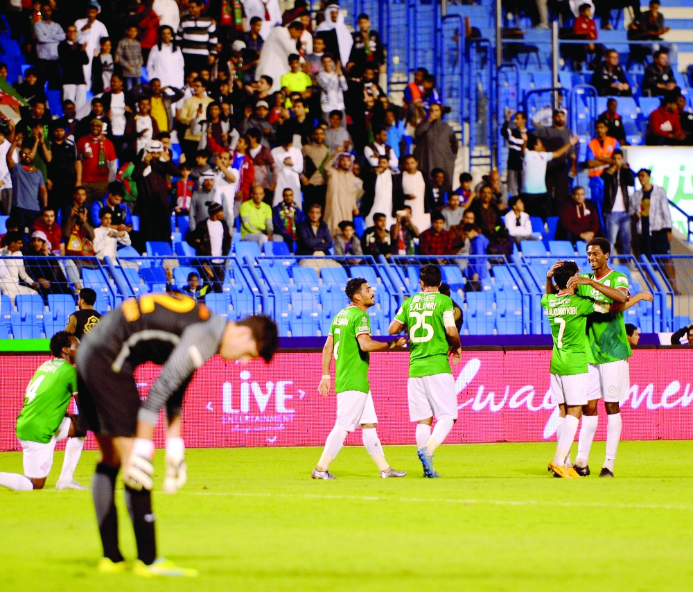 لاعبو الاتفاق يحتفلون بالفوز أمام غلطة سراي. (تصوير: سامي الغامدي)