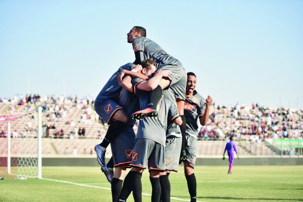 فرحة عارمة للاعبي وج بالفوز على الشباب. (المركز الإعلامي بنادي وج)