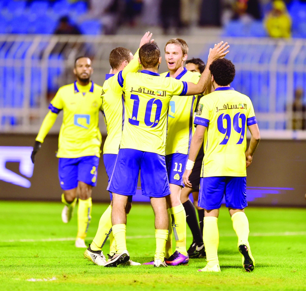 فرحة لاعبي النصر تكررت 4 مرات أمام الفيحاء. (تصوير: عبدالعزيز السلامة)