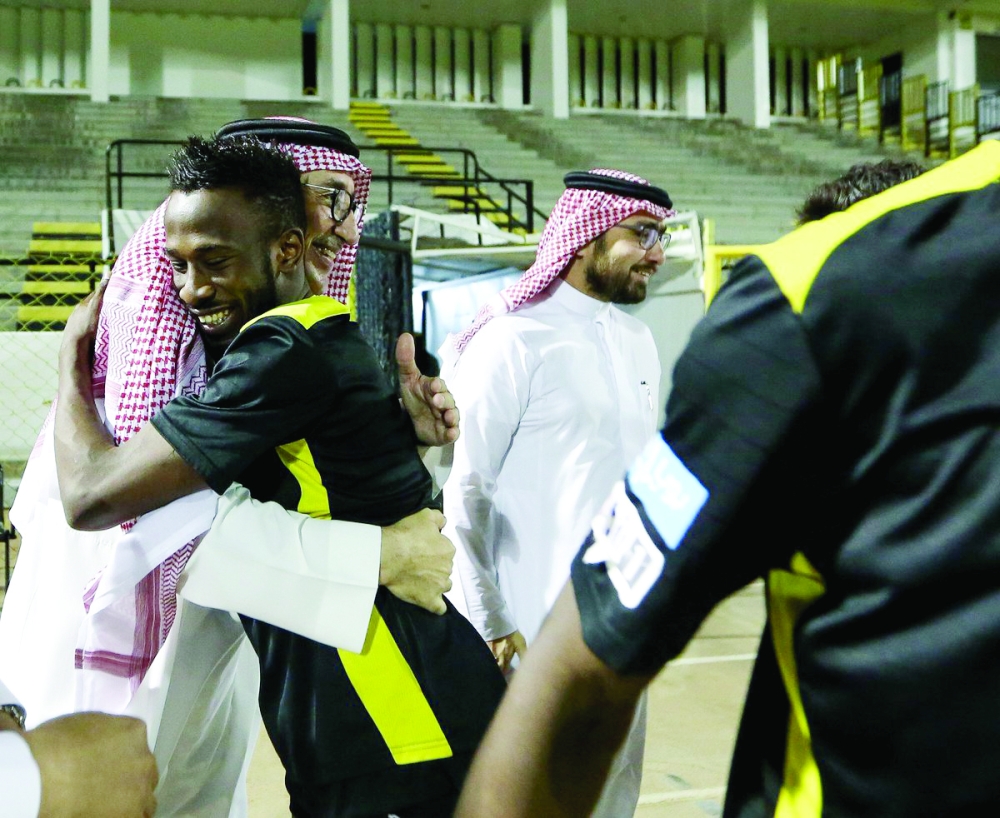 حاتم باعشن يحتضن فهد المولد. (عكاظ)