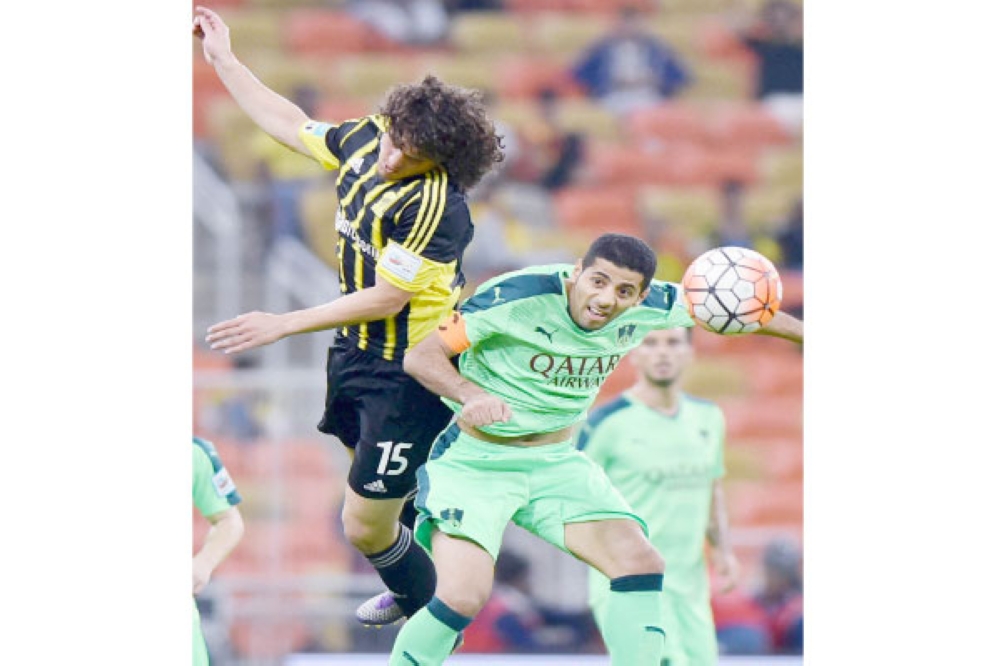 صراع على الكرة بين الجاسم وباجندوح في لقاء سابق. (عكاظ)