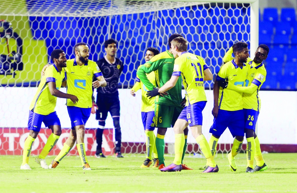 فرحة نصراوية بالفوز على الخليج. (عكاظ)