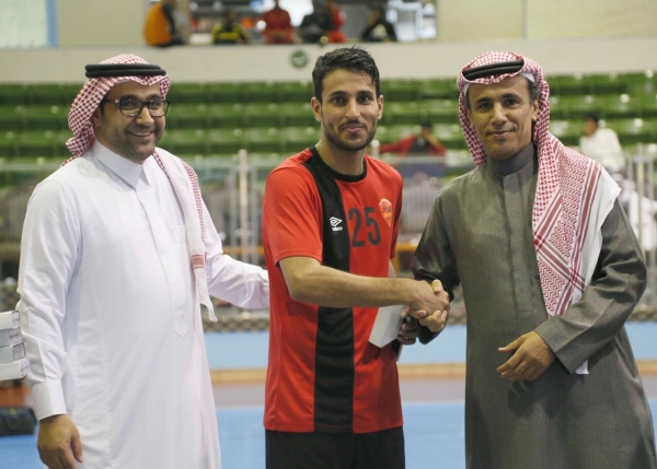 د. خالد المقرن يسلم لاعب الريان ميدالية المركز الأول.