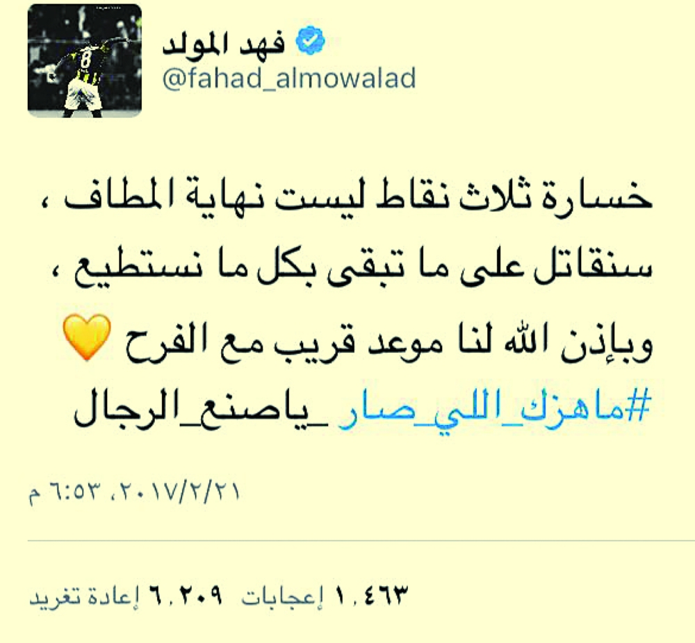 إلى ذلك أكد النجم الاتحادي فهد المولد عبر حسابه الشخصي في «تويتر» أن «خسارة ثلاث نقاط ليست نهاية المطاف، سنقاتل على ما تبقى بكل ما نستطيع، وبإذن الله لنا موعد قريب مع الفرح».، كما علق النجم المصري محمود كهربا المحترف في صفوف الفريق على قرار عدم عودة النقاط عبر حسابه الشخصي في تويتر بقوله: «جمهور الذهب طول ما انتم واقفين معانا حنكمل المشوار وما راح يؤثر فينا ولا يهزنا قرار وسنفرح سويا بإذن الله».