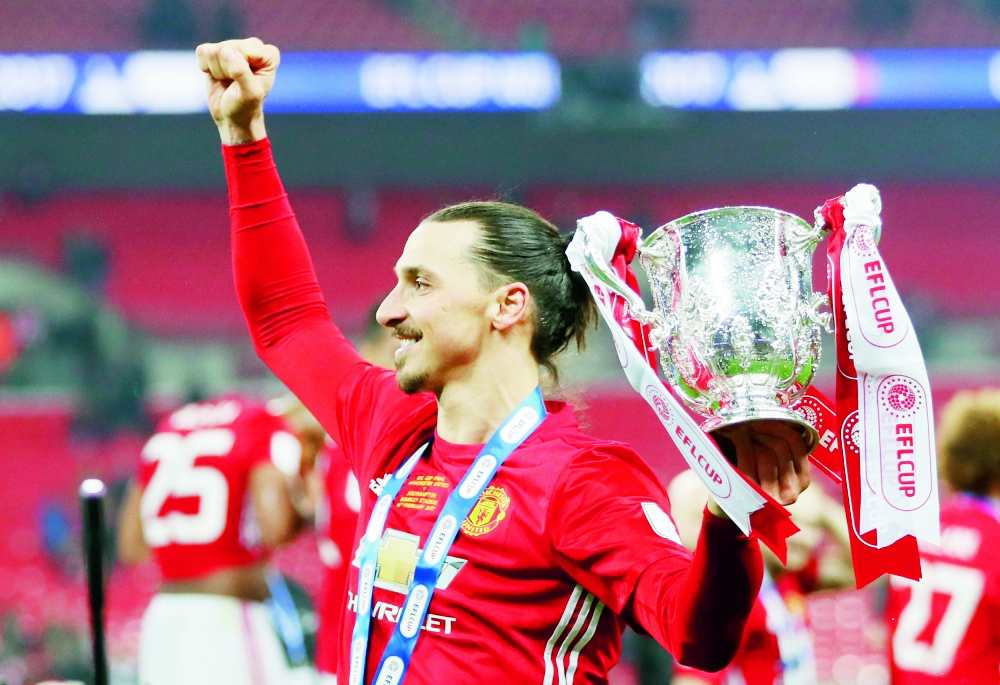 زلاتان إبراهيموفيتش يحتفل بكأس البطولة.