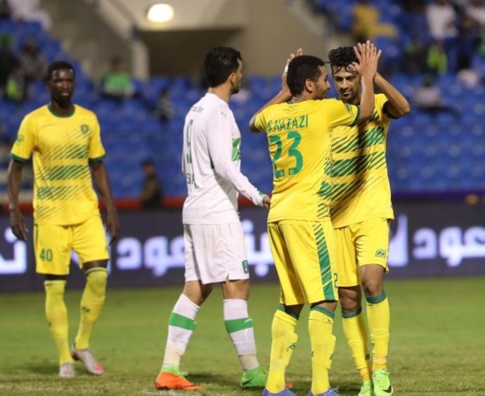 واصل الضيف تسيده لينال التقدم عبر تسديدة عبدالفتاح عسيري الخلفية الرائعة على يمين مسلم آل فريج (د:44).