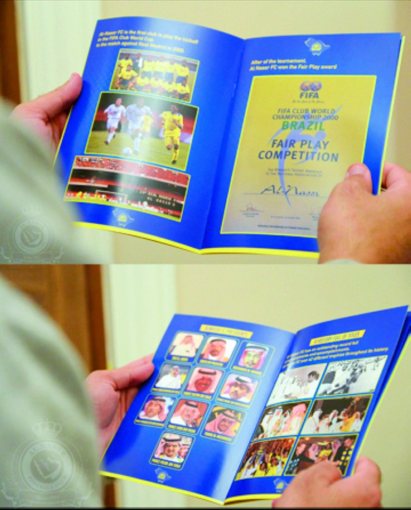 تزامنا مع مراسم توقيع نادي النصر لشراكة مع نيو بالانس في ملعب الأنفيلد في ليفربول الجمعة الماضية أصدر المركز الإعلامي بنادي النصر كتابا باللغة الإنجليزية يتحدث عن تاريخ وإنجازات النادي وعن مشاركته العالمية وجماهيريته الكبيرة مدعوما بصور لبطولات العالمي ولوحات التيفو التي رسمتها جماهيره في مباريات سابقة، وتم توزيعه على الحاضرين في حفلة توقيع الشراكة، كما استغل المركز الإعلامي مباراة ليفربول وأرسنال التي أقيمت مساء أمس الأول السبت وتم توزيعه على عدد من الإعلاميين الحاضرين للمباراة.