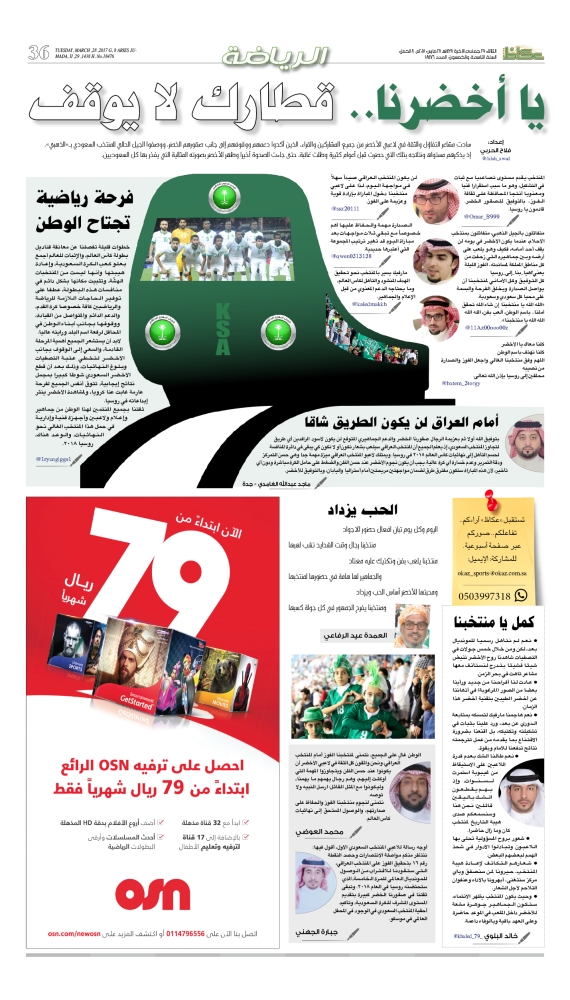 سادت مشاعر التفاؤل والثقة في لاعبي الأخضر من جميع المشاركين والقراء، الذين أكدوا دعمهم ووقوفهم إلى جانب صقورهم الخضر، ووصفوا الجيل الحالي للمنتخب السعودي بـ«الذهبي»، إذ يذكرهم مستواه ونتائجه بتلك التي حضرت قبل أعوام كثيرة وظلت غائبة، حتى جاءت الصحوة أخيرا وظهر الأخضر بصورته المثالية التي يفخر بها كل السعوديين.