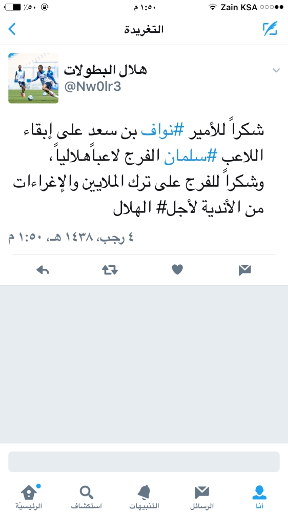 بعد شد وجذب وتخوف كبير دام لأكثر من أربعة أشهر، تنفست الجماهير الهلالية الصعداء بتجديد عقد نجمهم الدولي سلمان الفرج لمدة أربع سنوات، إذ كانت تلك الجماهير متخوفة من انتقاله إلى ناد آخر بعد أن تأخر في التوقيع لفترة ليست بالقصيرة، ما جعل العروض تنهال عليه بشكل مغر. وأشعل الجمهور الهلالي مواقع التواصل الاجتماعي «تويتر» فور إعلان إدارة النادي التوقيع معه رسميا، إذ أكدت أن بقاء الفرج في الفريق يعد مكسبا كبيرا لما يملكه من إمكانات فنية رائعة تفيد أي فريق يلعب له، مقدمة شكرها وتقديرها لرئيس النادي الأمير نواف بن سعد على تهيئة الأجواء المناسبة وتقريب وجهات النظر بين اللاعب وناديه من أجل استمراره مع الهلال، مؤكدة بأن ترك الفرج للملايين والإغراءات التي قدمت له من الأندية الأخرى واستمراره بناديه الأصلي الذي ترعرع فيه يدل على حبه ووفائه لفريق الهلال.