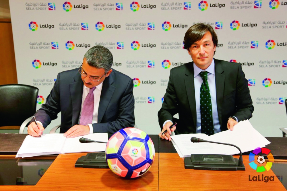 وقع اختيار رابطة أندية الدوري الإسباني لكرة القدم (لاليغا) على شركة صلة الرياضية لتكون ذراعها الاستثمارية في منطقة الشرق الأوسط وشمال أفريقيا. وتم توقيع العقد بين الطرفين يوم الجمعة الماضي في مدريد، وبموجبه تصبح شركة صلة الرياضية المسوق الحصري للحقوق التجارية للاليغا في المنطقة التي تشمل 22 دولة. وقع العقد نيابة عن شركة صلة الرياضية رئيس مجلس إدارة الشركة الدكتور راكان الحارثي، ومدير عام التسويق والمبيعات أدولفو بارا نيابة عن (لاليغا).