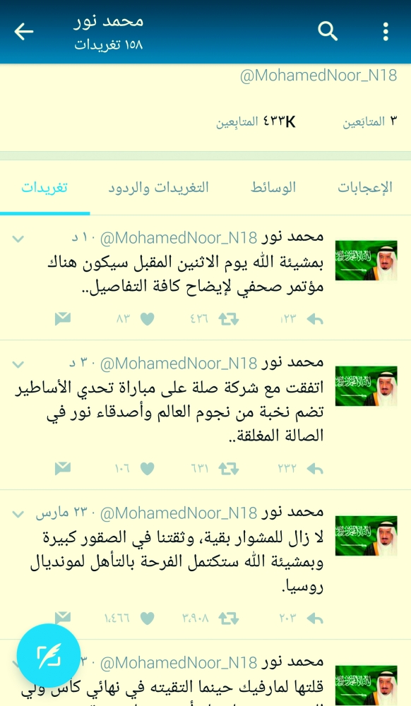 أعلن قائد الاتحاد السابق محمد نور عبر حسابه الشخصي في «تويتر» أمس عن اتفاقه مع شركة صلة على إقامة مباراة تحدي الأساطير التي تضم نخبة من نجوم العالم وأصدقاء نور في الصالة المغلقة بجدة، موضحا أنه سيكشف عن كافة التفاصيل في مؤتمر صحفي يوم الإثنين القادم.