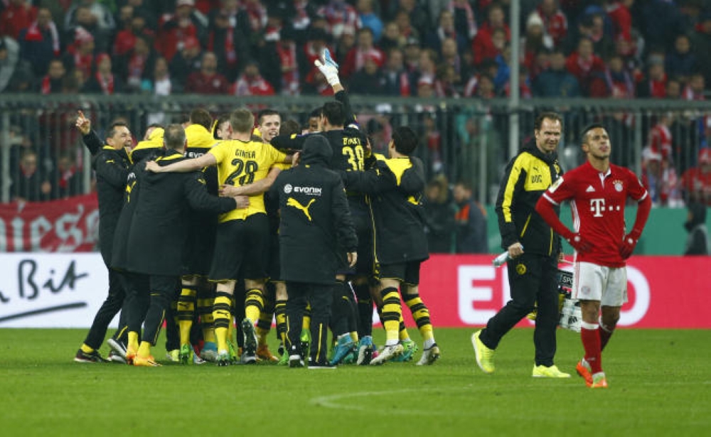 بخر بوروسيا دورتموند حلم غريمه بايرن ميونيخ بطل الموسم الماضي في إحراز الثنائية المحلية مجددا وبلغ المباراة النهائية بفوزه عليه 3-2 في ميونيخ (الاربعاء) في الدور نصف نهائي مسابقة كأس المانيا لكرة القدم.