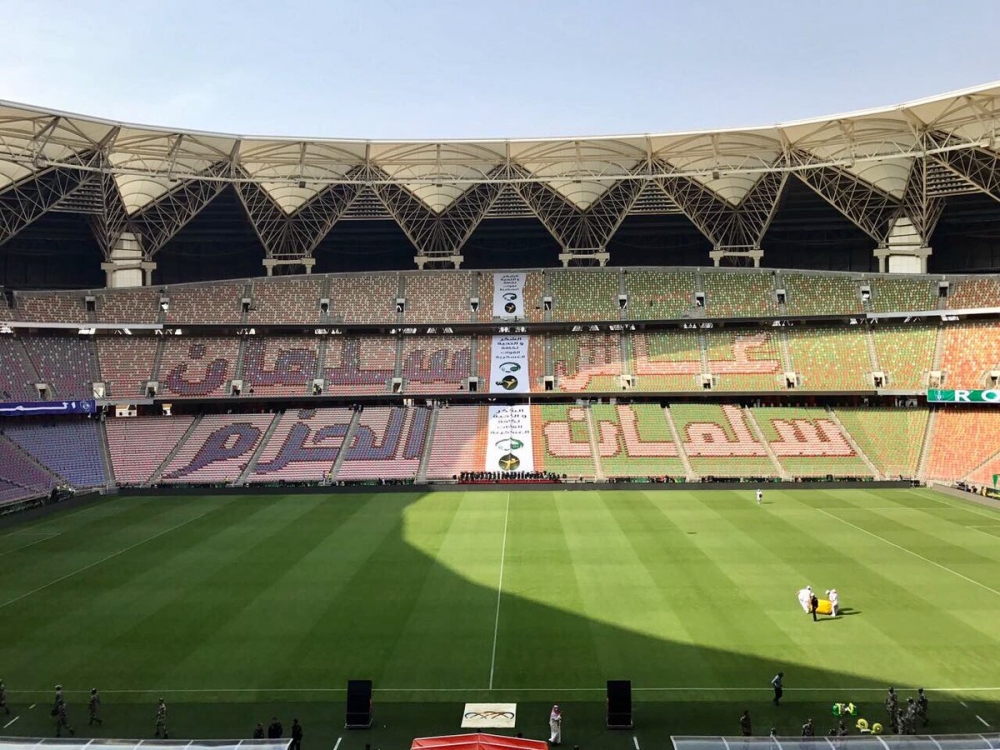 تزينت مدرجات ملعب الملك عبدالله الرياضية بجدة «الجوهرة» بتيفو نهائي كأس الملك، والذي يحمل قيمة وطنية تجمع أنصار طرفي النهائي الأهلي والهلال «عاش سلمان، سلمان الحزم»، في بادرة تؤكد أن تشريف الملك سلمان بن عبدالعزيز للكرنفال الكروي ورعايته للتجمع الرياضي يوحد جميع ألوان الأندية.