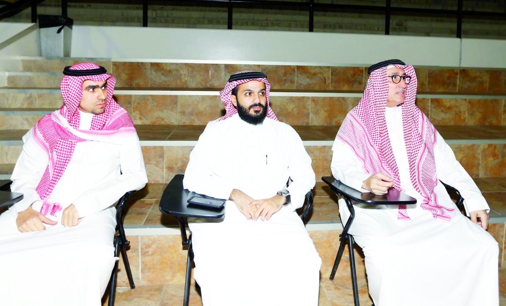 حاتم باعشن وأنمار الحائلي وأحمد كعكي في زيارة سابقة لمقر النادي. (عكاظ)