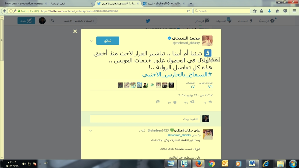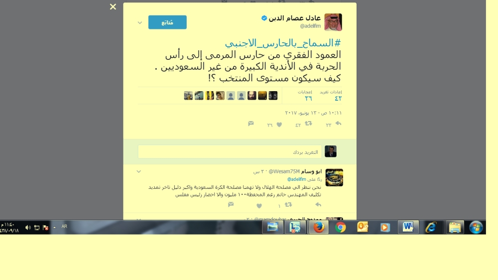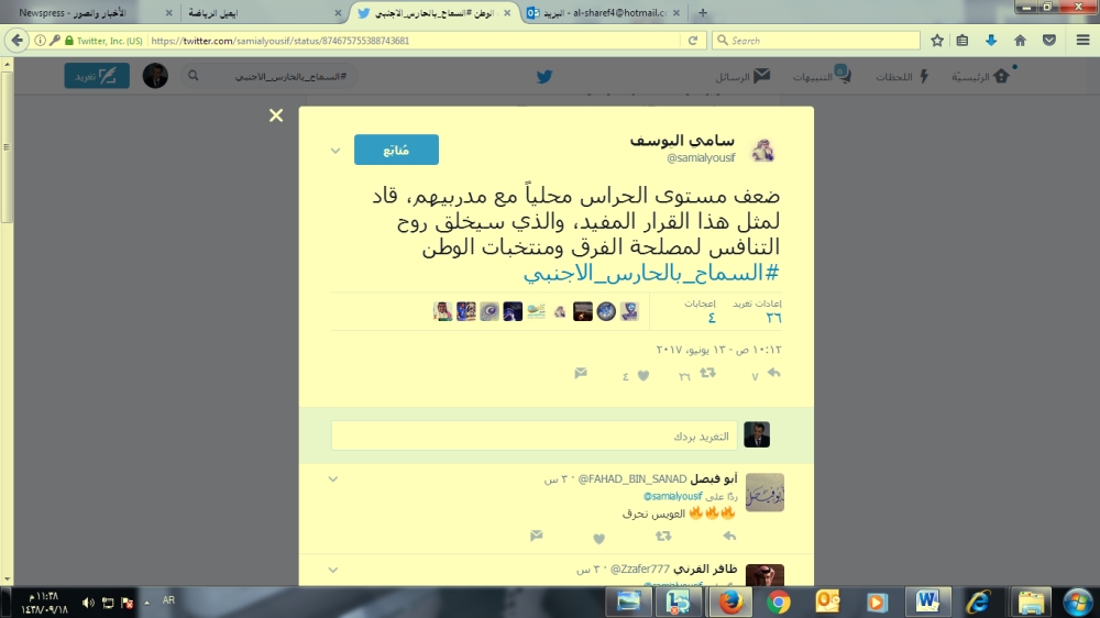 تباينت ردود الرياضيين على مواقع التواصل الاجتماعي حيال قرار الاتحاد السعودي لكرة القدم بالسماح للأندية بالتعاقد مع حراس أجانب ضمن الحد المسموح به من قبل لجنة الاحتراف، حيث ربط بعض الإعلاميين والمغردين القرار بما جاء في حساب نادي الهلال الذي أعلن في وقت سابق عن تقديم مقترح للاتحاد الكرة يقضي بالاستعانة بالحارس الأجنبي، وأرجع محمد الشيخي ومحمد الغامدي قرار اتحاد الكرة إلى استجابته لمقترح إدارة الهلال وذلك عبر حسابهما في (تويتر)، بينما رأى الحكم السابق مطرف القحطاني أن انتقال محمد العويس للأهلي وما صاحبه من سجال بين أكثر من ناد دفعت اتحاد الكرة إلى اتخاذ القرار.