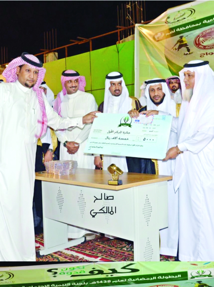 محافظ أضم بالإنابة يتوج الفريق الفائز.