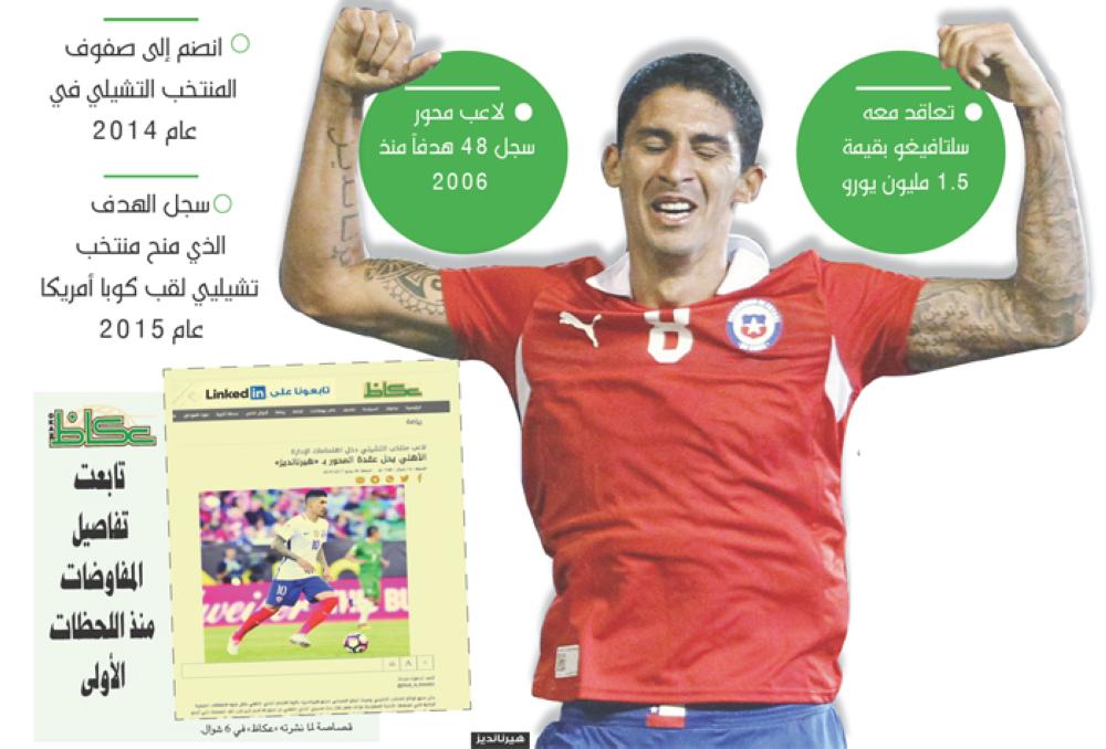 مصادر «عكاظ» أشارت إلى اقتراب إدارة النادي من الاتفاق مع نادي سلتافيغو الإسباني لانتقال اللاعب التشيلي بيدرو بابلو هيرنانديز الملقب بـ«إل توكو» محور ارتكاز المنتخب التشيلي، حيث تكثفت الاتصالات بين الطرفين لإتمام الصفقة التي أيدها مدرب الأهلي سيرجي ريبروف، نظرا لحاجة الفريق لمحور ارتكاز بمواصفات عالمية خلال الموسم القادم، يكون بديلا للاعب العراقي سعد الأمير. ومن المنتظر في حال إزالة العوائق التي تعتري الصفقة أن يعلن الأهلي عن التعاقد مع اللاعب خلال اليومين القادمين، في وقت يقود مفاوض أهلاوي آخر مفاوضات مع البرازيلي «كلاوديمير دي سواز» لاعب فريق كلوب بروج البلجيكي الذي يقوده المدير الفني البلجيكي برودوم الذي سبق له أن درب نادي الشباب السعودي، ويعتمد على اللاعب بشكل كبير في فريقه، ويعتبر أحد ركائزه الأساسية.