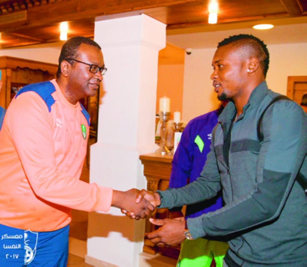 ابوا بونا لحظة وصوله إلى معسكر الأهلي. (عكاظ)