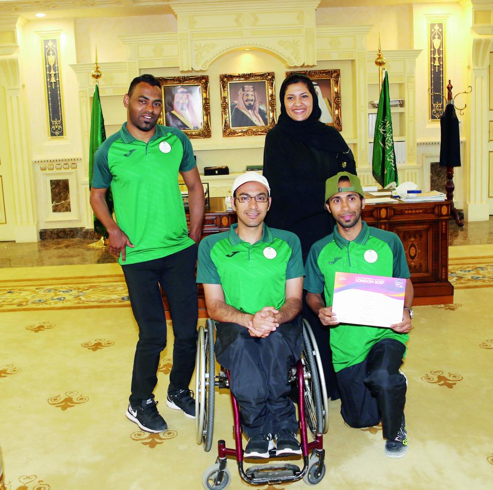 التقت وكيل رئيس الهيئة العامة للرياضة للتخطيط والتطوير صاحبة السمو الملكي الأميرة ريما بنت بندر بن سلطان ظهر أمس الثلاثاء في مكتبها بمجمع الأمير فيصل بن فهد الأوليمبي بمدينة الرياض، لاعبي المنتخب الوطني لألعاب القوى لذوي الاحتياجات الخاصة.