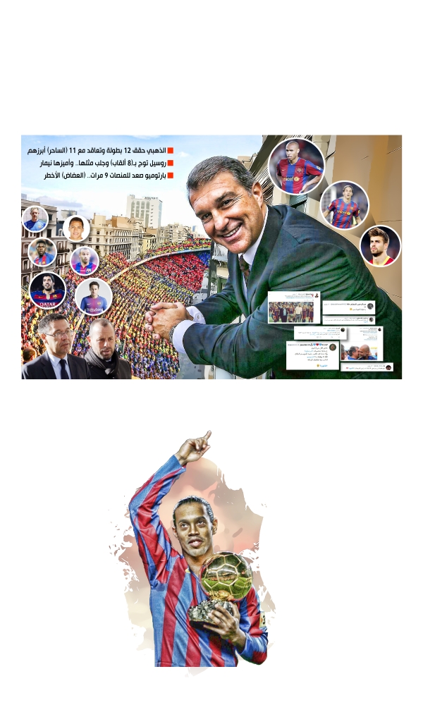 الفترة الذهبية التي لم ولن ينساها أي مشجع لنادي برشلونة ما زالت تردد حتى اللحظة، انتهى عهد لابورتا، وأتى الرئيس ساندرو روسيل الذي نجح وفشل في نظر محبي (البلوغرانا)، رحل روسيل بخيره وشره، وحضر (سيئ الذكر) حسب ما يصفه مشجعو نادي برشلونة، ألا وهو جوسيب ماريا بارتوميو الذي يلاقي هجوماً شرساً من الجميع «عكاظ» أعدت تقريراً موسعاً عن الفروقات بين آخر ثلاثة رؤساء ألا وهم: لابورتا، روسيل، جوسيب، وحول عدد البطولات وأبرز الصفقات التي تمت في عهدهم، وإليكم التفاصيل: