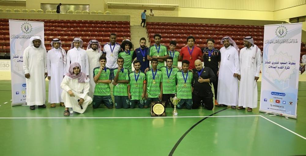 لاعبي وإداريي فريق المجد بعد التتويج ببطولة الصالات