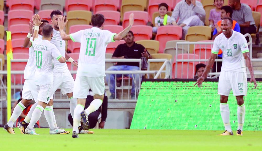 فرحة لاعبي الأهلي بالانتصار على الفتح. (تصوير: عبدالغني بشير)