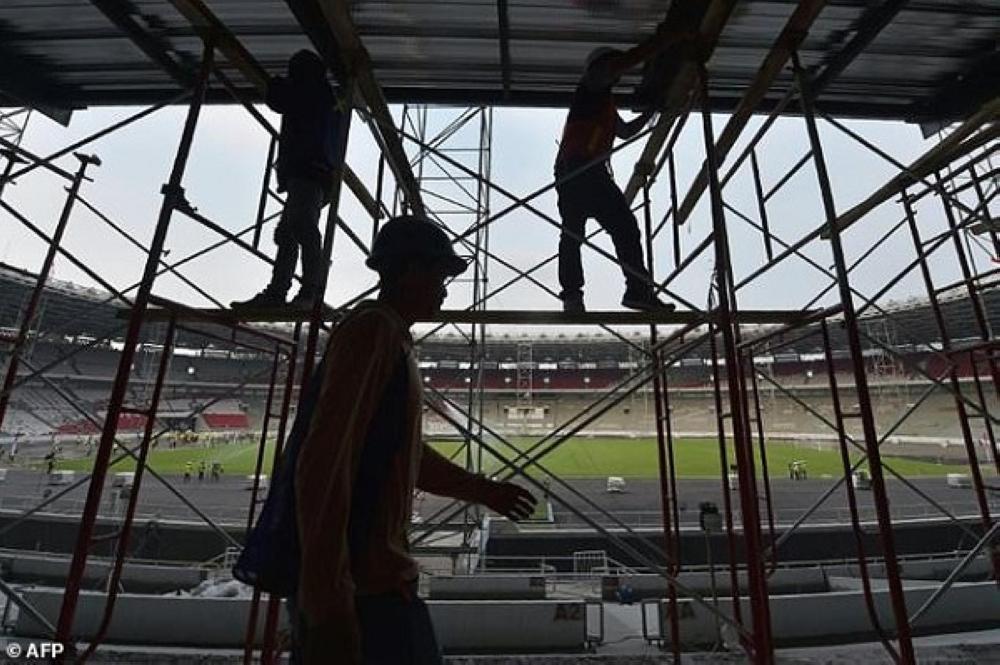 وفي موقع للبناء في وسط العاصمة، يحاول مئات من العمال وسط الجرافات وأكياس الأسمنت تحويل الألعاب الآسيوية في إندونيسيا إلى واقع.