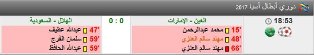 البطاقات الملونة التي تحصل عليها لاعبو الهلال السعودي والعين الإماراتي.