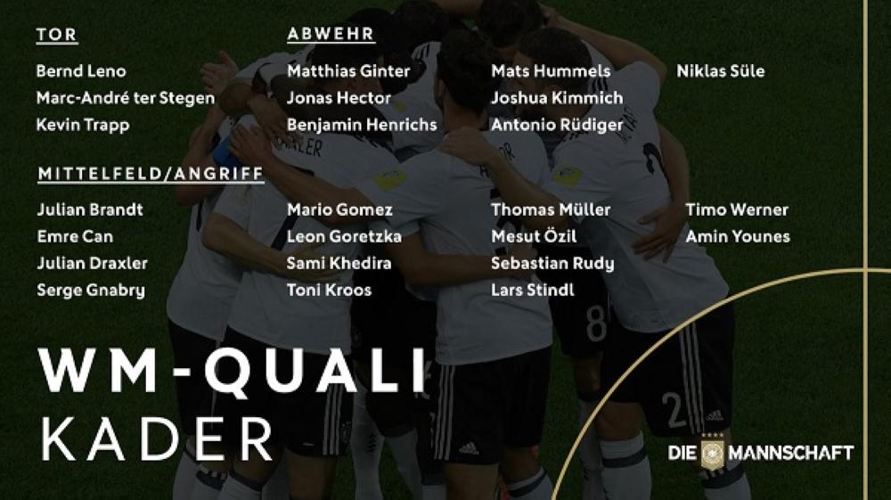 كما واصل الاعتماد على الشباب فاستدعى 17 لاعبا فازوا بكأس القارات، منهم دراكلسر وغينتر، وأضاف إليهم أيضا سيرج غنابري من هوفنهايم، والمهاجم ماريو غوميز العائد إلى التشكيلة.