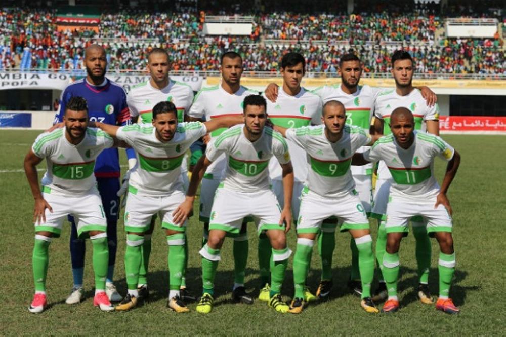 صورة جماعية للاعبي المنتخب الجزائري الذي سقط في فخ زامبيا وفقد التأهل للمونديال