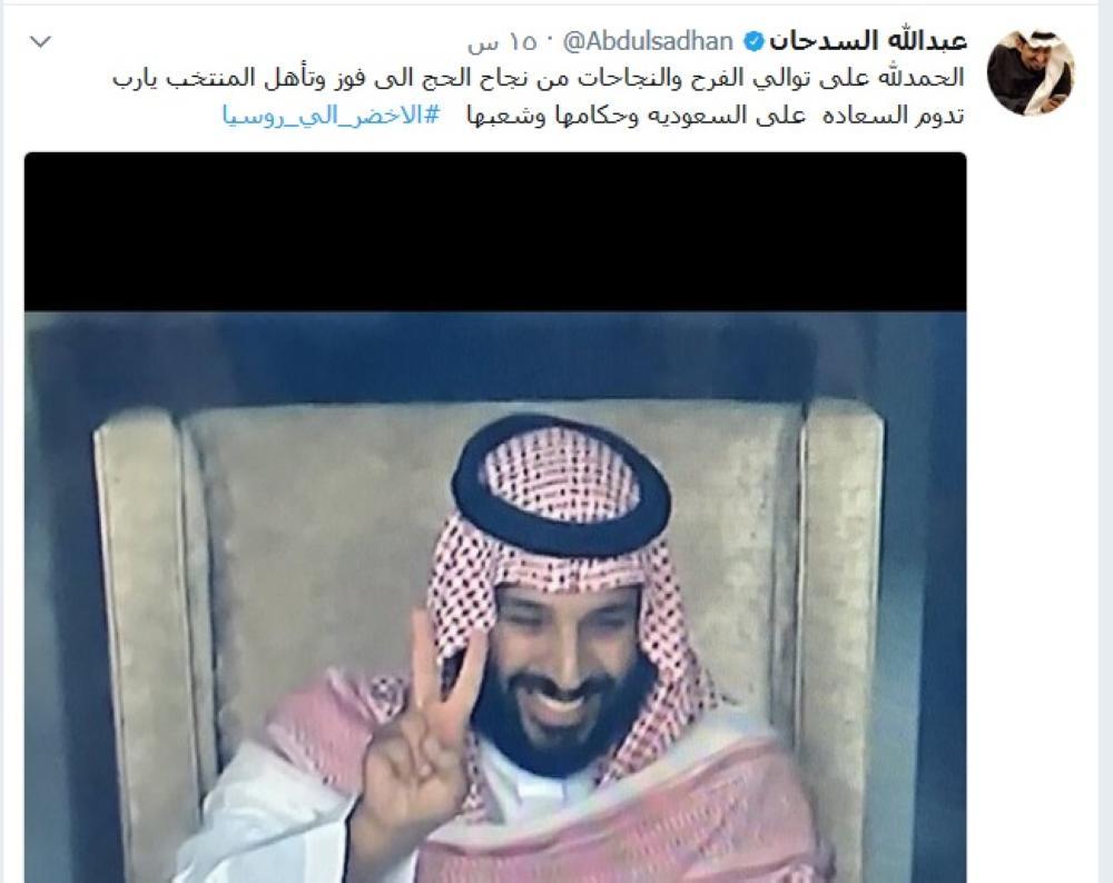 وكتب الفنان السعودي عبدالله السدحان تغريدة قال فيها: «الحمد لله على توالي الفرح والنجاحات، من نجاح الحج إلى فوز وتأهل المنتخب. يا رب تدوم السعادة على السعودية وحكامها وشعبها». فيما كتبت الممثلة السعودية مروة محمد: «مبروك لفخرنا وعزنا الأخضر السعودي لكأس العالم». وقال المطرب السعودي ماجد المهندس: «ألف مبروك تأهل منتخبنا السعودي لنهائيات كأس العالم 2018 في روسيا بحضور وجه السعد محمد بن سلمان». بينما كتب المطرب السعودي رابح صقر: «أرفع آيات التهاني والتبريكات لخادم الحرمين الشريفين وولي عهده الأمين والشعب السعودي على تأهل منتخبنا».