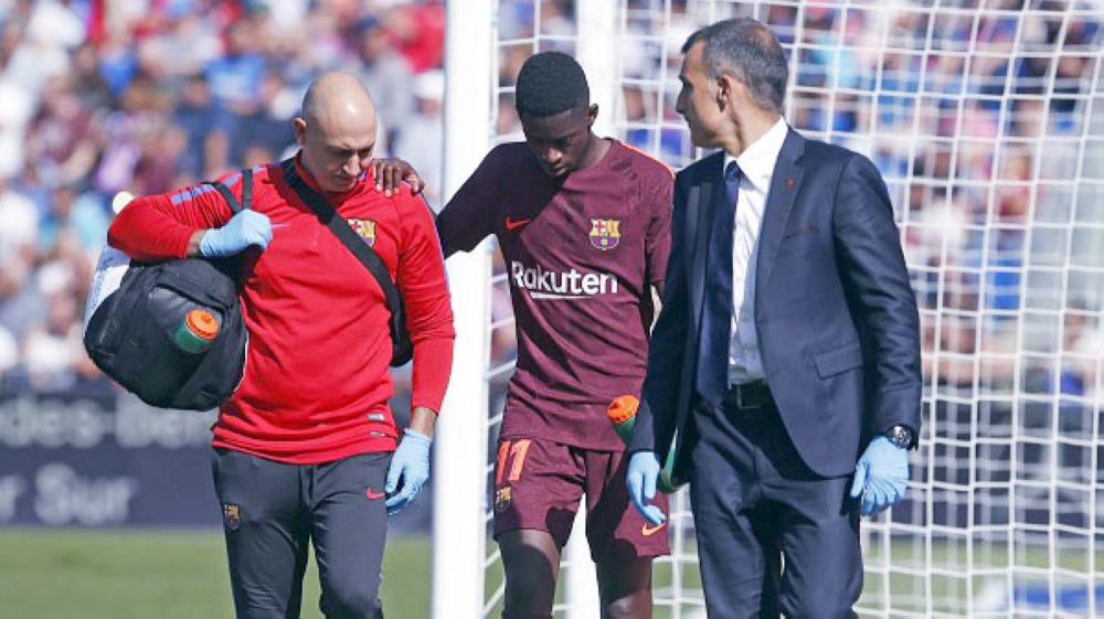 وسيغيب ديمبيلي (20 عاما) عن الملاعب حتى أربعة أشهر بعد تعرضه لتمزق في فخذه الأيسر خلال مباراة السبت ضد خيتافي في الدوري المحلي.