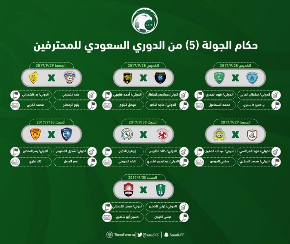 قائمة مباريات الجولة الخامسة من الدوري السعودي للمحترفين وأسماء الحكام