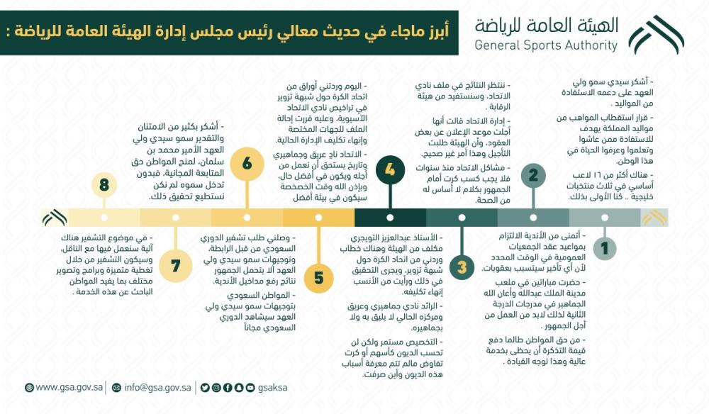 أكد رئيس مجلس إدارة الهيئة العامة للرياضة تركي بن عبدالمحسن آل الشيخ، أن ولي العهد نائب رئيس مجلس الوزراء وزير الدفاع صاحب السمو الملكي الأمير محمد بن سلمان بن عبدالعزيز، أمر بعدم تشفير الدوري السعودي، ووجّه بعرض المباريات بالمجان، والسماح بتشفير البرامج المصاحبة فقط، رافعا شكره للقيادة السعودية على حرصها على تلمس احتياجات المواطن السعودي في المجالات كافة. وكشف خلال حديثة لبرنامج «أكشن يا دوري»، أنه أعفى أنمار الحائلي من رئاسة نادي الاتحاد، وتم تكليف حمد الصنيع بمهمات الرئيس حتى نهاية الموسم، على أن يقدم أعضاء مجلس إدارته خلال ثلاثة أيام من صدور القرار، كما تم تكليف فهد المطوع برئاسة نادي الرائد، بدلا من عبدالعزيز التويجري، مؤكدا أن الجمعيات العمومية والمراجعات المالية للأندية قرار لا تراجع عنه، وأن هناك أندية ستتعرض لنفس مصير نادي الاتحاد، لافتا إلى أن هيئة الرياضة تعمل لتهيئة الملاعب الرياضية بالشكل الملائم، ليتمتع المواطن السعودي بمشاهدة تليق به، مشددا على ان التخصيص مستمر ولكن لن تحسب الديون كأسهم أوكرت تفاوض مالم تتم معرفة أسباب هذه الديون وأين صرفت .