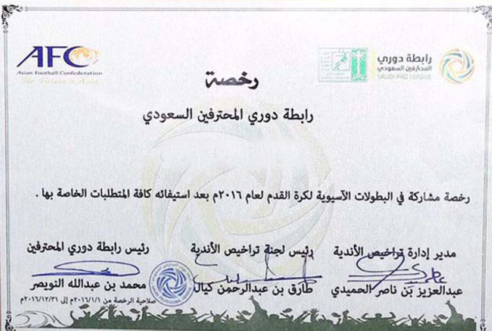استبعدت لجنة تراخيص الأندية النصر والاتحاد والرائد والشباب والتعاون والاتفاق والباطن من الحصول على الرخصة الآسيوية، لعدم استيفائها المعايير اللازمة لاستخراجها خلال المدة المحددة لها في لائحة تراخيص الأندية.