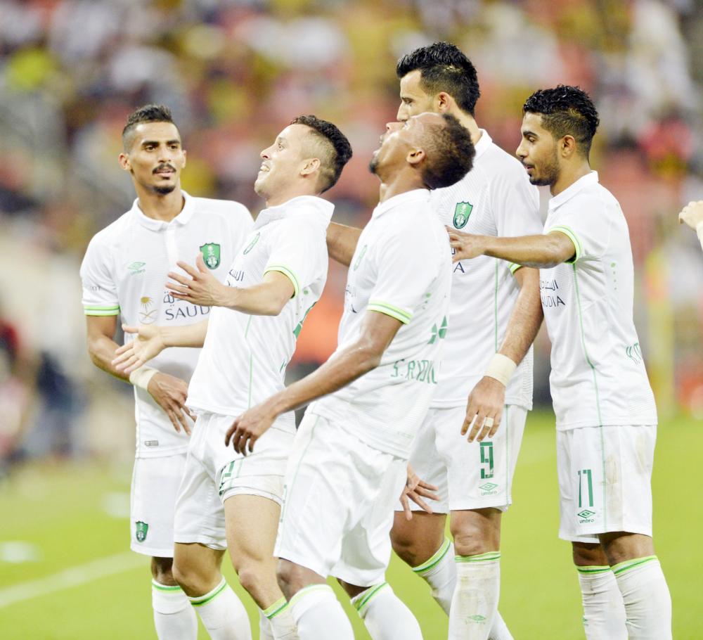 فرحة أهلاوية بأحد الأهداف الثلاثة في مرمى الاتحاد. (تصوير: ناصر محسن)