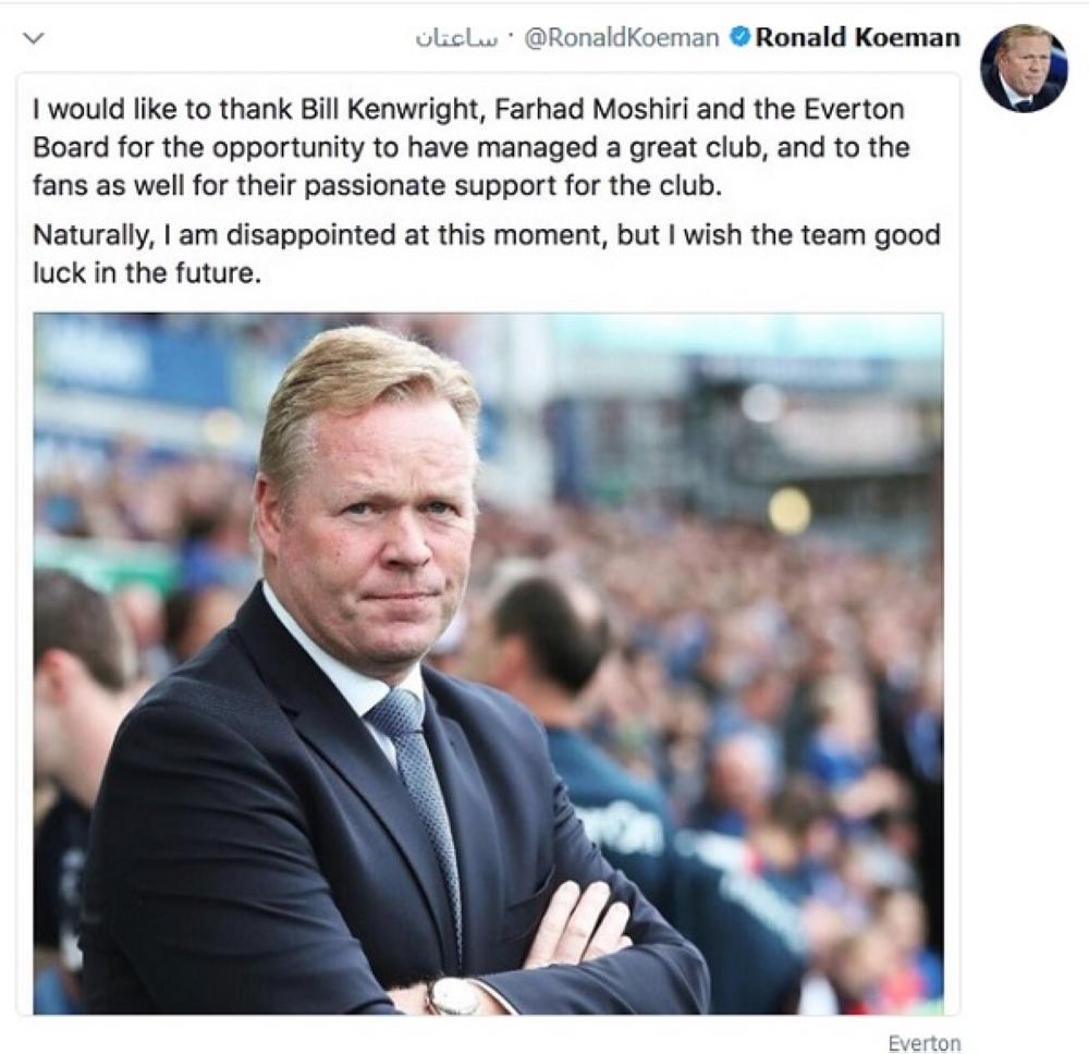 يشار إلى أن نادي إيفرتون أعلن إقالة كومان بسبب سوء نتائج الفريق، وتراجعه إلى المراكز الثلاثة الأخيرة بجدول الدوري الإنجليزي الممتاز، بعد تسع مراحل منذ بداية الموسم، إذ لم يحقق سوى انتصارين.