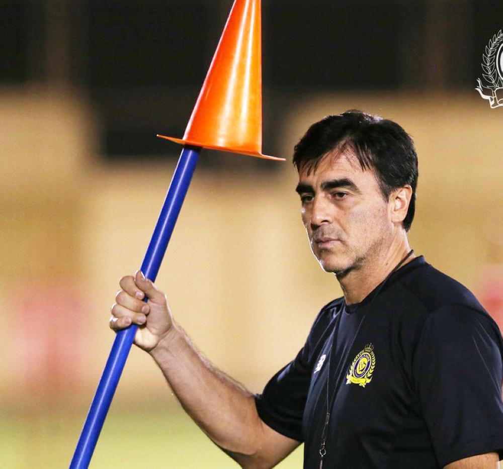 غوستافو في تدريبات النصر أمس. (عكاظ)